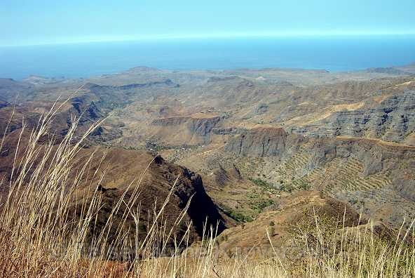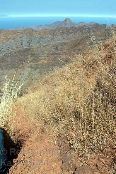 Schon lange geplant aber immer wieder verschoben – der Aufstieg zum Pico da Antonia. Nun ist es endlich soweit. Ein wolkenloser, sonniger Tag verlockt geradezu, diese alpine Herausforderung anzunehmen. Um 08:00 geht es los. Um den Anstieg zu verkürzen, sind wir bis zum Monte Tchta (kreolisch Monte Txóta) mit dem Auto gefahren. Nach einer kurzen Besichtigung der neu erbauten Sendestation und beeindruckenden Ausblicken weit über die Insel wandern wir auf einem schmalen Pfad durch den lichten Eukalyptuswald.