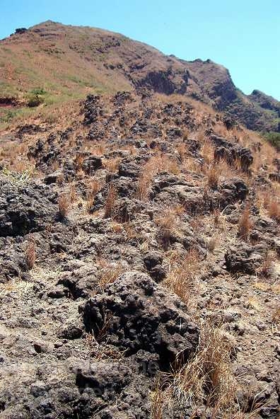 Bergauf – bergab auf holprigem Terrain schlängelt sich der Ziegenpfad um den Westabhang des Pico da Antonia. Wir queren kleine Taleinschnitte, steigen über Felsgrate und nähern uns dem letzten Anstieg.
