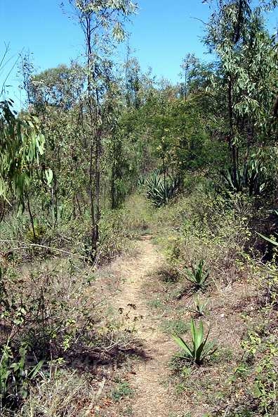 Der Pfad windet sich teilweise durch Büsche. Eine lange Hose und Hemd/Bluse ist hier immer von Vorteil, damit die Kratzer sich in Grenzen halten. Trotzdem gibt es recht widerborstige Äste, die sich auch durch die Hose bohren und von schräg hinten zustechen.