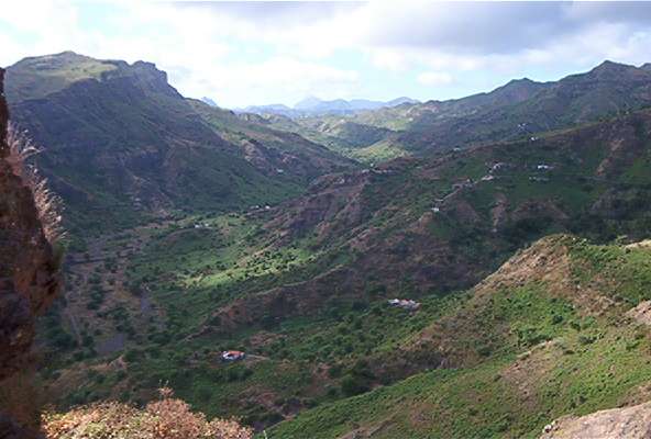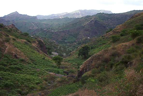 Sie queren Mais- und Bohnenfelder, kommen durch Weiler und Gehöfte. Weite Blicke übers Land einerseits – bis nach Assomada – und andererseits bis hinunter ans Meer – sogar hinüber nach Maio – schenken Ihnen wieder völlig neue Eindrücke von Santiago.