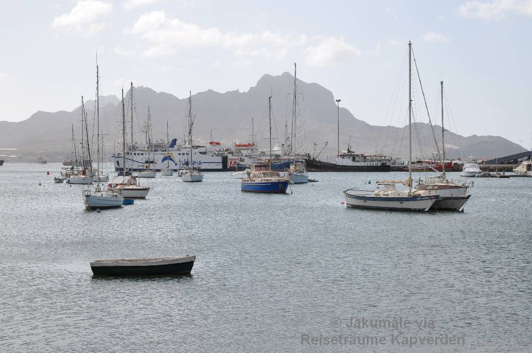 Die quirlige Hafenstadt liegt in einer wunderbaren halbrunden Bucht. Der Hafen von Mindelo ist einer der größten im Atlantik. An den modernen Kaianlagen und dem 1997 eingeweihten Containerterminal können Schiffe bis 11.5 m Tiefgang anlegen. Seit der Unabhängigkeit ständig modernisiert ist der Hafen heute noch immer der wichtigste Umschlagsplatz und dadurch Mindelo wieder Sitz vieler Händler, die Waren aus aller Welt importieren und auf die anderen Inseln weiterverteilen. Kreuzfahrtschiffe legen an und Weltumsegler machen hier Halt.